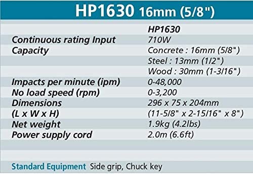 Makita HP1630 710 Watts Impact Drill (0.62 inches – Maximum Chuck Size)