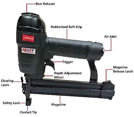 The Miles MB 18-32 Pneumatic Brad Nailer (Medium, Black) is engineered for detailed wood fastening tasks where precision, speed, and surface quality matter most. Compact and lightweight, it offers a smooth firing mechanism and adjustable depth control—ideal for trim work, decorative paneling, and furniture joinery.