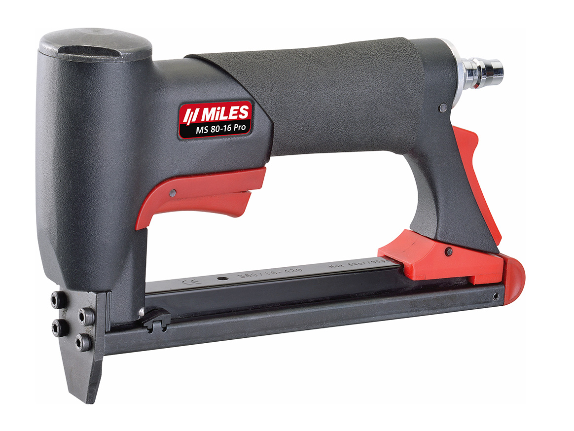 The Miles Kangaro MS 80-16 Pro is a heavy-duty pneumatic tacker designed for professional use in upholstery, wood paneling, and fabric installation. Built to deliver fast and consistent stapling, it supports 80 series staples and features a solid construction that makes it ideal for both workshop and on-site applications.