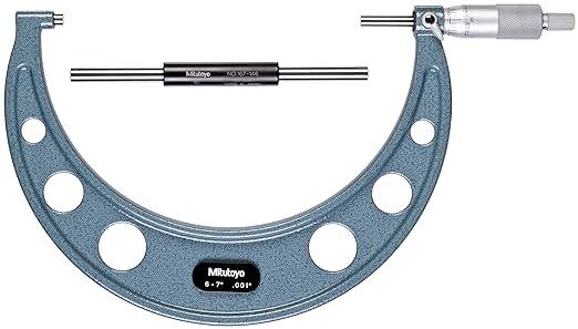 Mitutoyo 103-182 Outside Micrometer, Baked-enamel Finish, Ratchet Stop, 5-6″ Range, 0.001″ Graduation, -0.00015″ Accuracy