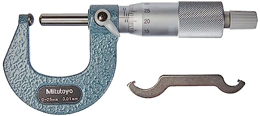 Mitutoyo 115-215 spherical face micrometer, ratchet stop, 0-25mm range, 0.01mm graduation, -0.003mm accuracy, spherical spindle