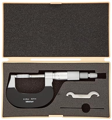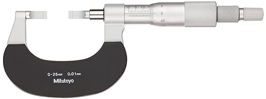 Mitutoyo 122-111 Blade Micrometer, Ratchet Stop, 0-25mm Range, 0.01mm Graduation, -0.003mm Accuracy, 0.4mm Tip