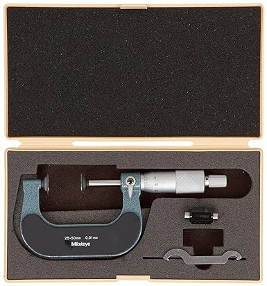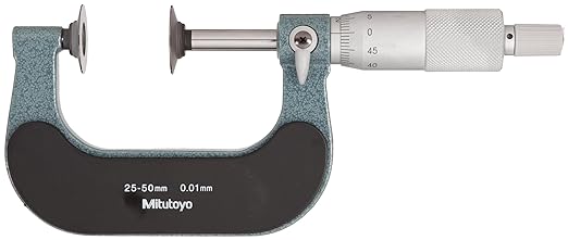 Mitutoyo 123-101 Disk Micrometer, Ratchet Stop, 0-25mm Range, 0.01mm Graduation, -0.004mm Accuracy