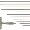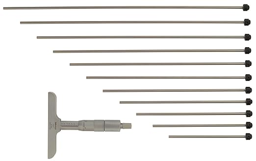Mitutoyo 129-150 Vernier Depth Gauge, Interchangeable Rods, Micrometer Type, 0-12″ Range, 0.001″ Graduation, -0.00024″ Accuracy, 2.5″ x 0.63″ Base, 12 Rods