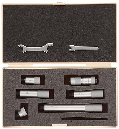 1.Tubular micrometer measures the inside dimensions of cylinders, rings, and parallel surfaces. 2.Vernier scale in metric units for taking precise inside dimension (ID) measurements. 3.Includes interchangeable extension rods for a diversified range of measurement. 4.Slow head travel helps provide fine positioning. 5.Carbide measuring faces help provide wear resistance.