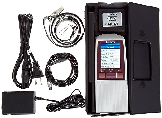 The mitutoyo surf test sj-210 (178-561-02a) is a portable, handheld surface roughness tester with a 2.4-inch, color, backlit, lcd touch screen that displays in vertical or horizontal orientations, and left- and right-hand data views in 16 languages, measures 39 parameters, and has a micro-sd card that stores up to 10,000 results. A surf tester, also known as a profilometer, surface roughness tester, roughness gage, or surface finish gage, is a device used in metrology to inspect and measure surface roughness in shop, metalworking, manufacturing and quality control (qc) applications. This surface tester has an ingress-protection (ip)-53 rating for water and dust resistance. It displays total and sectional measurement results, assessed profiles, evaluation curve, bearing area curve (bac), amplitude distribution curve (adc), and waveform results. Profile images can be zoomed up or down. The surf test can display results in sixteen languages. An integrated micro-sd card stores 10,000 measurement results, and supports screen capture. A built-in battery allows for approximately 1,000 measurements with four hours of charging time. The unit’s memory stores up to 10 measurement conditions, and one measured profile. Operational keys on the front of the unit and under the sliding cover are labeled, and display settings have left and right arrow keys. Keys are displayed on the front of the unit, and additional, less frequently used keys are hidden under the sliding cover to prevent unintended operations. The unit has a stylus alarm that indicates when cumulative measurement distance exceeds the preset limit. The detachable drive unit can be separated from the display unit with a cable for maneuverability. The sj-210 has auto-calibration that can be initiated with numerical value entry, and gain adjustment for color clarity. An auto-sleep function can be activated to automatically turn the power off, if there has been no operation for 10 to 600 seconds. Measurement conditions are saved when power is turned off. The unit has parameter customization for calculation and display. It has a “go/no-go” (g/ng) parameter judgment with maximum value of 16% rule option, and ansi standard deviation selection option. The surf test sj-210 (178-561-02a) is password-protected to protect settings and to prevent unintended operations. It has a USB 2.0 interface with statistical process control cable for data collection, can be connected to a printer and a A memory card slot supports data storage. It works with Microsoft windows 2000 s windows windows vista, and windows 7 operating systems, and Microsoft excel 2000, excel 2002, and Microsoft office excel 2007. The unit includes a roughness specimen, and comes with a carrying case that has a belt loop attachment.