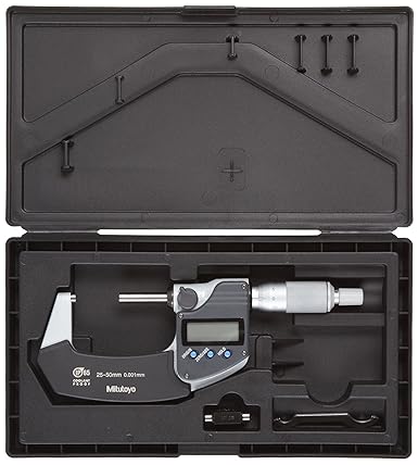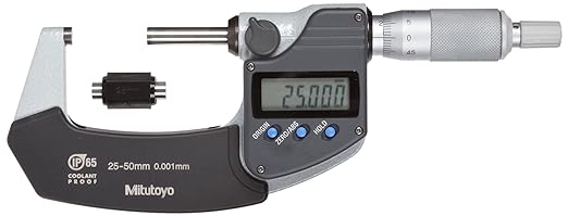 Mitutoyo 293-241 Coolant Proof LCD Micrometer, Ratchet Stop, 25-50mm Range, 0.001mm Graduation, -0.001mm Accuracy, Without SPC data output