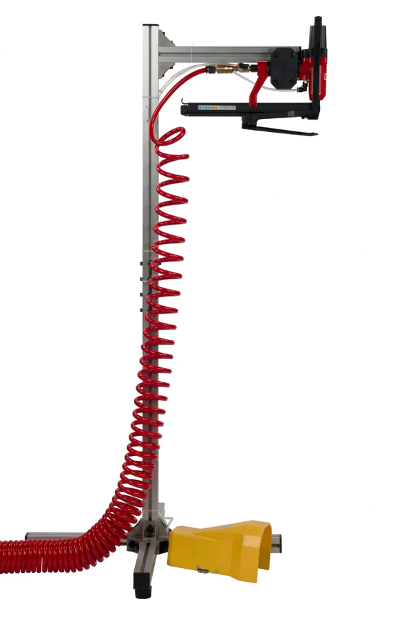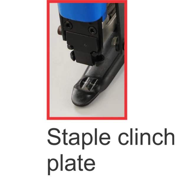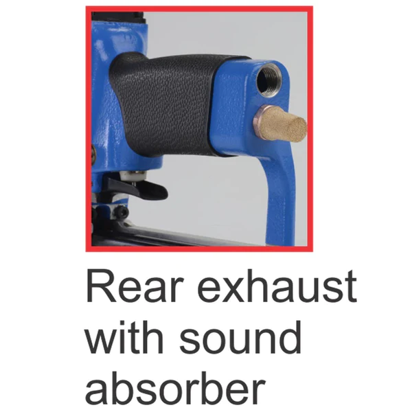 "Designed for control and comfort, this plier includes a hardened clinching plate, rear exhaust with sound absorber, and a carton protector for depth control. Ergonomic grip and support for 8–16 mm staples make it perfect for precise stapling at 60–100 psi."
