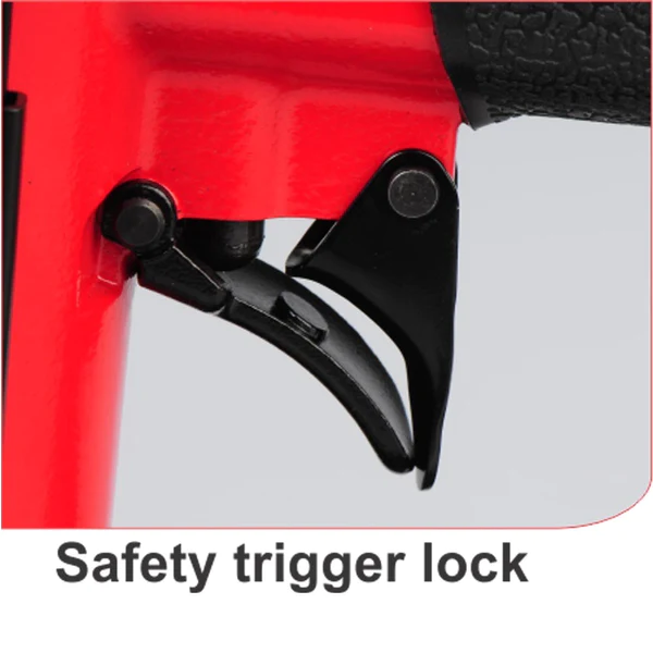 Ergonomic non-slip ergonomic rubber grip. Long magazine accommodates upto 168 staples. Safety trigger. Full metal internal parts for long durability. Curved magazine for quick opening of magazine during loading. Fasteners recommended: 8 -25 mm. PRESSURE: 60-100 psi .. Built for reliability and user comfort, this tool offers excellent control and durability, making it ideal for both professional and DIY use. Designed to reduce fatigue while maintaining precision and safety.