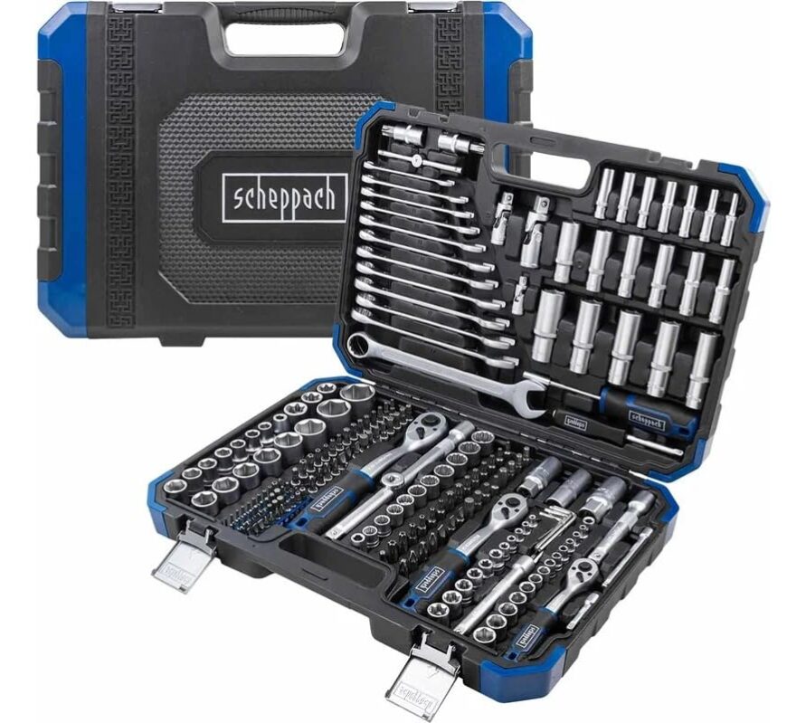Scheppach Germany Professional Socket Set, 218-Piece, Chrome Vanadium Steel, 1/4″, 3/8″ & 1/2″ Drive with Storage Case