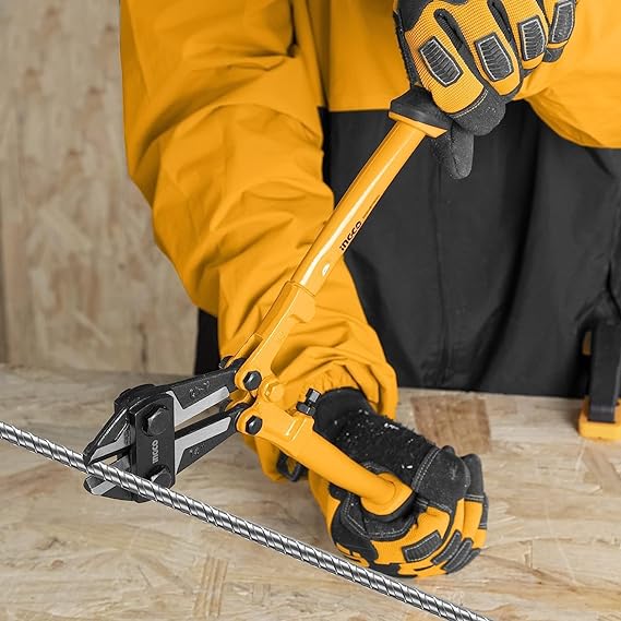 INGCO Bolt Cutter,14 Inch Heavy Duty Bolt Cutters, Cr-V, Blade Black Finish and Polish, TPR Two Color Handle, Used to Cut Wires Bolts Cables Chain Link Fences HBC1814