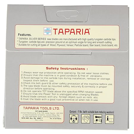 Taparia TCT saw blades are manufactured with high quality tungsten carbide tips