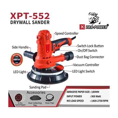 Xtra Power Dry Wall Sander XPT-552 with LED Light- 900 watt for sanding wall putty